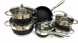 BN-293 Набор кастрюль 12 пред. 2,1л; 2,1л;2,9л;3,9л;6,5л+сковорода чорний
