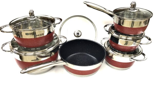 BN-294 Набор кастрюль 12 пред. 2,1л; 2,1л;2,9л;3,9л;6,5л+сковорода красний