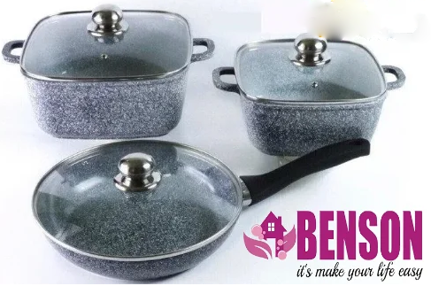 BN-326 Набор Кастрюля квадр. с крышкой и сковорода с крышк. 6пр - Литой алюминий- ГРАНИТНОЕ покрыти