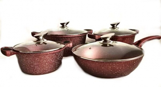 BN-334 Набор кастрюль и сковорода 2.5л 4.5л 6.5л; 28см красн.