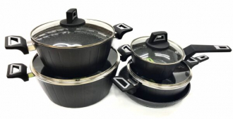 BN-343 Набор кастрюль 9 пред.1,2л;2,4л;4,0л;6,8л сковор. 24 см мрам.покр. внешн. сторона с полосками