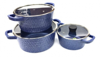 BN-348 Набор кастрюль 6 пред. 2,5л;4,5л;6,5л; мрам.покр. внешн. сторона сотами