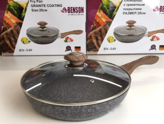 BN-540 Сковорода с кришкой 28 см гранит. покритие с красним