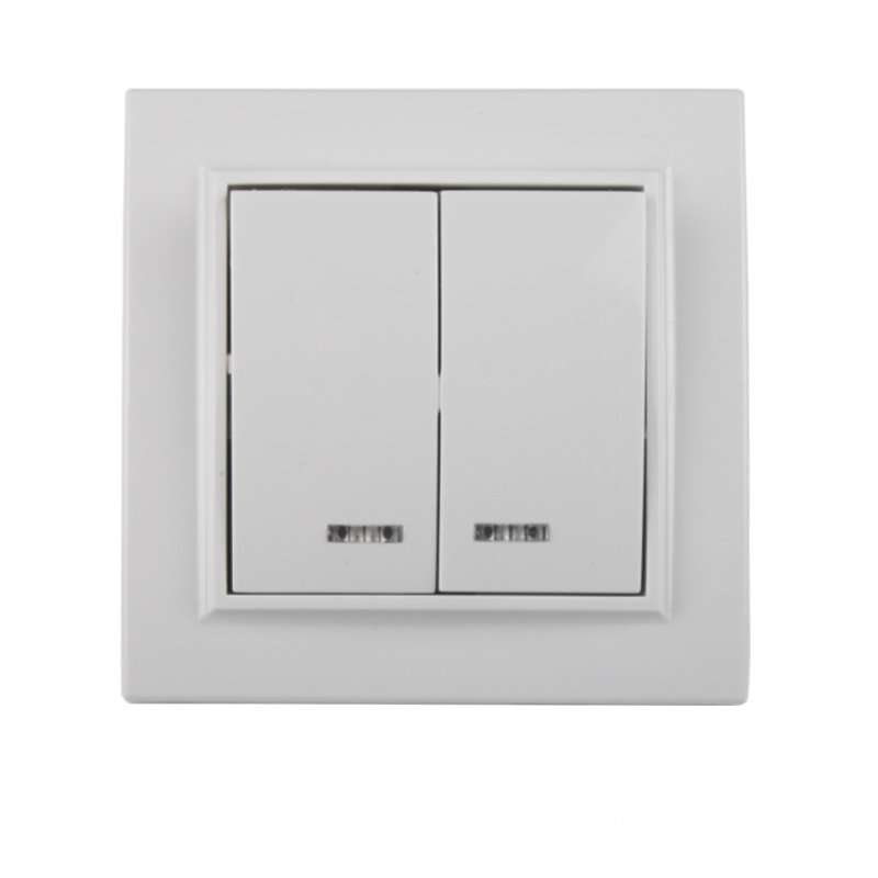 EH-2104 Вимикач з підсвічуванням подвійний Білий