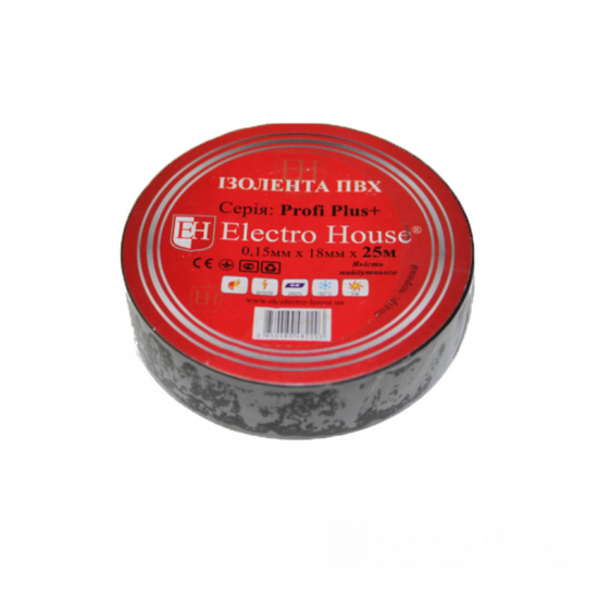 Стрічка ізоляційна чорна 0,15мм х 18мм х 25м виробництва Electro House призначена для використання як скріплюючий матеріал. Так само застосовується для тимчасової ізоляції відкритих провідників. Абсолютно не поширює процес горіння, завдяки особливому матеріалу на основі високотехнологічного полівінілхлориду. За рахунок своїх вологовідштовхуючих властивостей, може тривалий час протистояти підвищеній вологості. Такий ефект досягається за допомогою спеціального просочення, що покриває зовнішній шар ізоляційної стрічки. Цей товар не боїться дії низької температури і ультрафіолетового випромінювання. Може використовуватися на відкритому повітрі. Продукція компанії відповідає пожежним нормам безпеки. А так само має сертифікати якості міжнародного зразка.