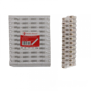 Клемна колодка 15A 12mm2 Поліпропілен EH - CPP - 0014n є простим і надійним електротехнічним виробом, який використовується при електромонтажних роботах, пов'язаних з прокладенням електропроводки або при підключенні освітлювального і іншого електроустаткування. Вона дозволяє сполучати між собою електропроводи з різних металів - алюмінію і міді. По конструктивних особливостях термінал складається з дванадцяти пар електроконтактів з латуні, які згори покриті вогнетривкою і міцною оболонкою. Кожну пару контактів можна відокремити і використати окремо. Клемний блок легко поміщається в розподільну шафу або монтажну коробку. Для того, щоб з її допомогою з'єднати дроти, треба їх струмовиводячі жили завести з обох боків в клему і затиснути гвинтами. У експлуатації відрізняється високою зносостійкістю і довговічністю.
