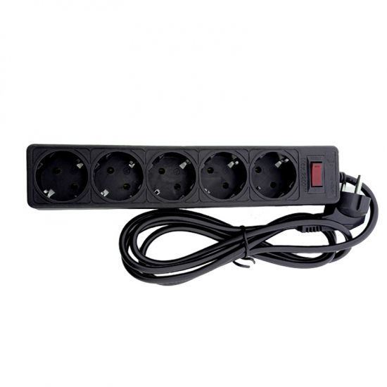 EH-NFB-5.2 Мережевий фільтр 5 гнізд із заземленням, 2 м Чорний