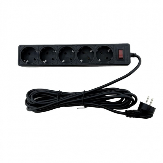 EH-NFB-5.5 Мережевий фільтр 5 гнізд із заземленням, 5 м Чорний