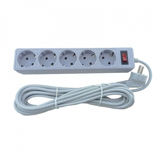 EH-NFG-5.5 Мережевий фільтр 5 гнізд із заземленням, 5 м Сірий