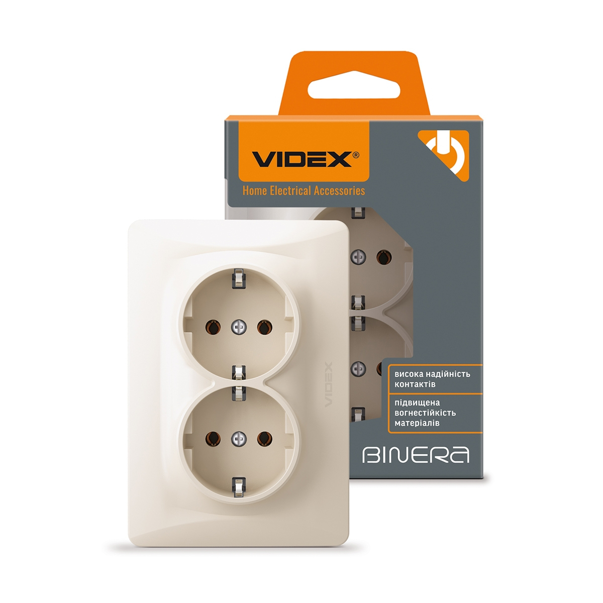 Розетка подвійна із заземленням кремова VIDEX BINERA (VF-BNSK2G-CR) (10/80)