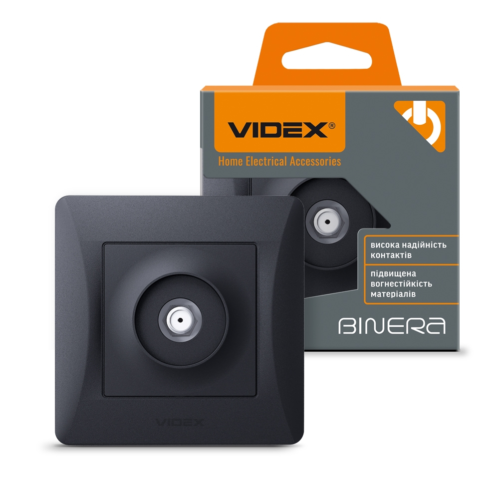 Розетка SAT одинарна супутникова чорний графіт VIDEX BINERA